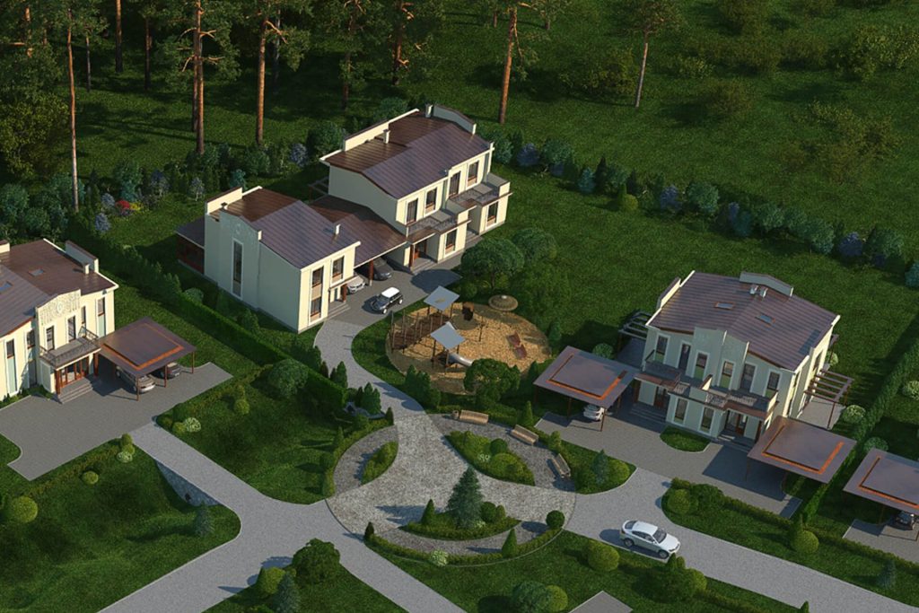 Green Village began as one of the most complex challenges our studio had taken on. The site, a generous plot with partially built homes and bare foundations, needed to be reimagined as a cohesive residential community with shared green spaces and family‑friendly amenities. In collaboration with architect Jānis Kravalis and landscape designer Ieva Strazda, we reimagined and carefully integrated existing structures, introducing new architectural elements that brought visual unity across the property.